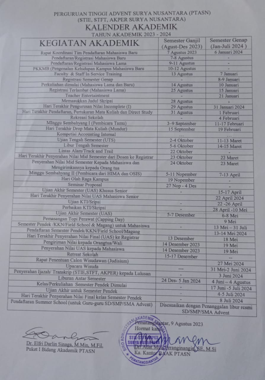 Berikut ini kelender akademik yang dapat diakses untuk melihat jadwal-jadwal penting di Perguruan Tinggi Advent Surya Nusantara Kalender dalam bentuk pdf dapat di lihat disini ...
